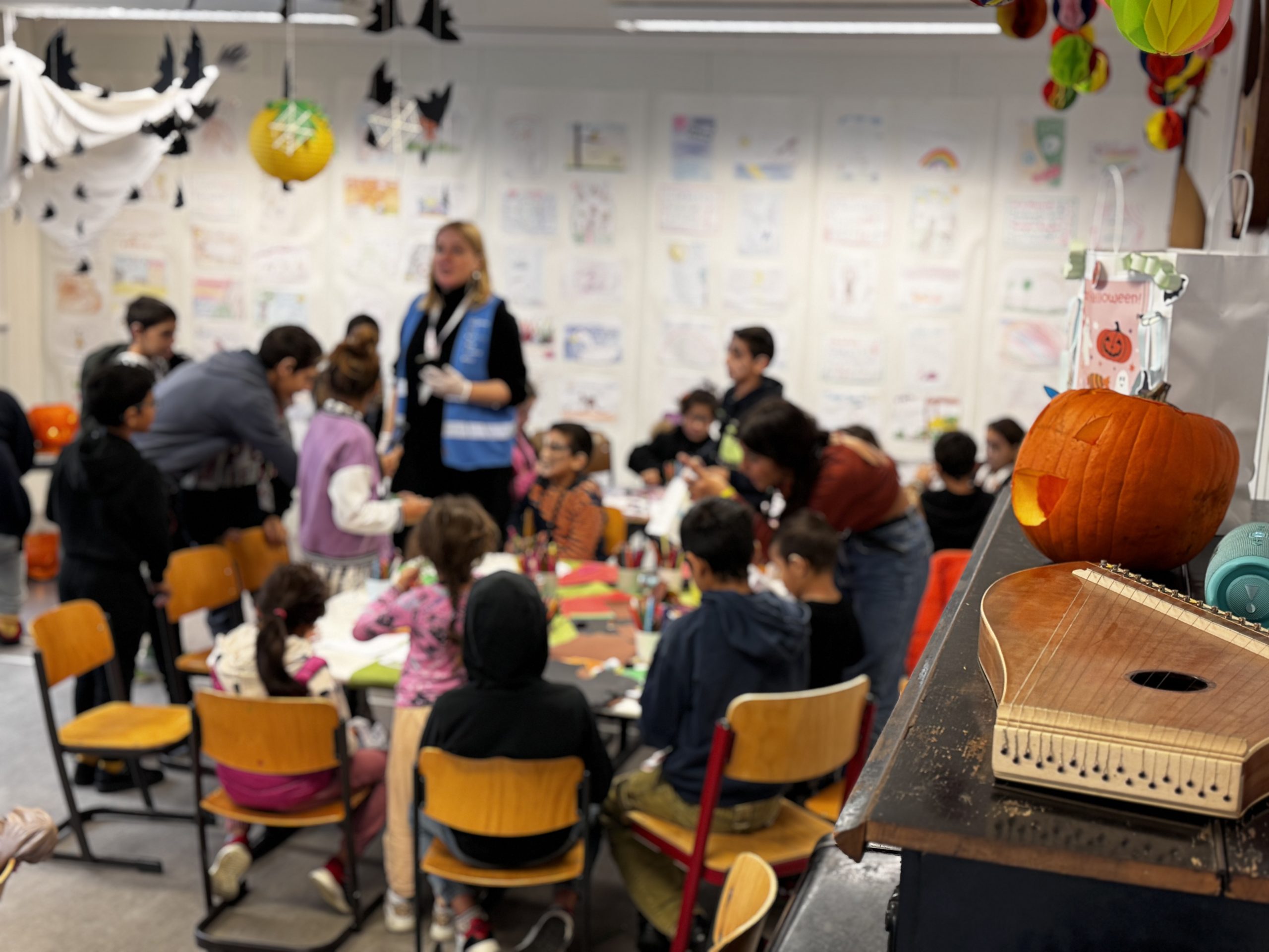 In der Ankunfts- und Notunterkunft Tegel wurde Halloween zu einem echten Highlight für Kinder und Eltern. Schon am Vortag hatten sich rund 15 Kinder und ihre Familien im Freizeitbereich versammelt, um gemeinsam aus knallorangenen Kürbissen schaurig-schöne Grimassen zu schnitzen. Trotz Wind und Regen entstanden bei guter Musik, Halloween-Deko und viel Lachen kleine Kunstwerke.