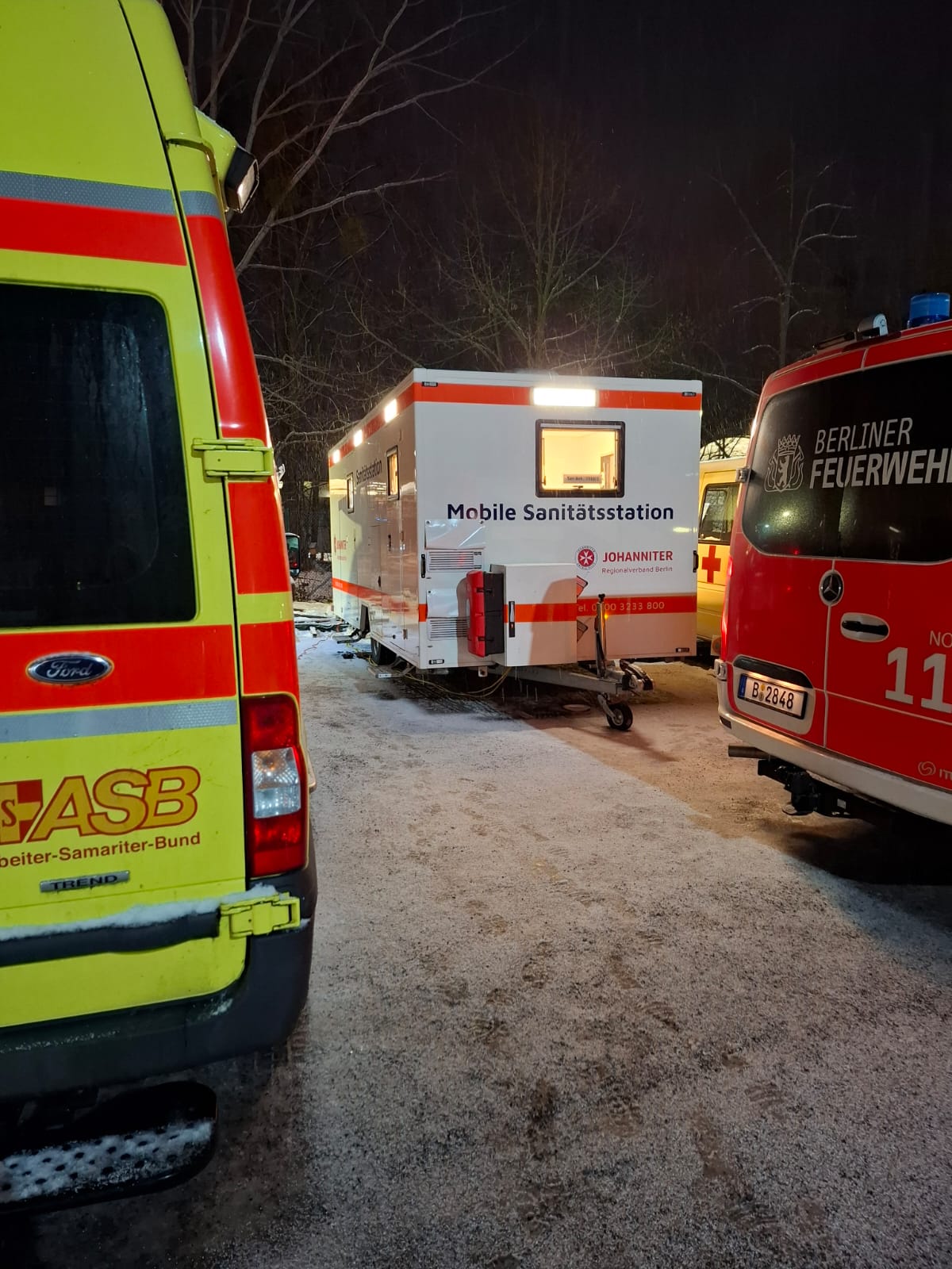 - rund 50 Einsatzfahrzeuge, darunter Krankentransport- und Mannschaftstransportwagen
